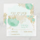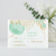 Fleurs romantiques vert menthe et blanc avec carte de réponse mariage feuille or. Les détails de la parties scintillant sont simulés.