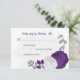 Fleurs royales romantiques violettes et blanches avec carte de réponse mariage botanique feuille en argent. Les détails de la parties scintillant sont simulés.
