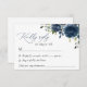 Complétez votre papeterie mariage avec cette carte RSVP design. Le design présente des fleurs d'aquarelle bleu marine et de la verdure sur l'arrière - plan blanc.