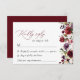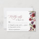 Complétez votre papeterie mariage avec cette carte RSVP design. Le design est composé de fleurs d'aquarelle bordeaux, rose et violet et de verdure sur l'arrière - plan blanc.