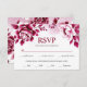 Aménagement floral bordeaux et carte RSVP de lavage à l'aquarelle. Cette carte RSVP présente un délicat design floral bordeaux, rappelant la porcelaine classique, embellit la carte avec des fleurs de pivoines représentées dans le style de peinture à l'encre traditionnelle. La palette de couleurs est bordeaux et rose, égayée par des accents blancs épurés. Un lavement à l'eau douce rose ajoute à l'attrait artistique de la carte. Le dos est complété par un motif floral complémentaire.