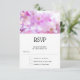 Carte RSVP avec une belle photo avec des fleurs de cerisiers roses. Image rêvée avec lumières bokeh et étincelles.