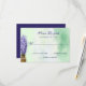 Cette carte RSVP de mariage aquarelle présente un vase rempli de belles tiges de fleurs de lavande. Elles sont dressées contre un arrière - plan mélange de sauge pastel vert et lavande. Le texte et le dos de l'invitation sont une lavande sombre.