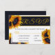 Calligraphie or élégant script de mariage carte RSVP avec options de menu avec l'aquarelle rustique bouquet de tournesols peint à la main sur un arrière - plan blanc clair et foncé de minuit bleu. ++++++++++++++++ Idéal pour votre été ou automne style de ferme | pays rustique moderne | chic jardin fleuri extérieur ou mariages jardins. — Si vous n'avez pas besoin des options de menu, supprimez simplement le texte !