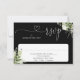Une simple et élégante carte de réponse avec des cœurs floraux de verdure noir et blanc avec écriture cursive, comprenant vos coordonnées dans une typographie chic. Conçue par Thisisnotme©