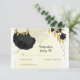 Fleurs noires et blanches romantiques avec carte rsvp réponse feuille botanique mariage or. Les détails de la parties scintillant sont simulés.