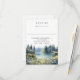 Une élégante carte de réponse RSVP aquarelle florale de fleurs sauvages au bord du lac en forêt avec vos détails dans une typographie chic. Conçue par Thisisnotme©