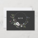 Ces cartes de réponse mariages fantaisistes présentent un cadre arrondi de fleurs sauvages et de feuilles verts et de couleur rose, bleu, violet et blanc illustrés et colorés sur un arrière - plan noir et gris fusain. Un design spectaculaire à la fois boho et élégant.
