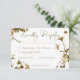Célébrez votre histoire d'amour avec la beauté intemporelle d'une fin d'été. Notre carte de réponse mariage rustique avec deux choix de dîners offre un agencement captivant de fleurs sauvages pressés à la main, rappelant les longues journées d'été. Les marguerites blanches douces se mêlent aux feuilles verts sauge, aux fleurs blanches délicates et à une touche de chaleur aux accents jaune-or. Ce design simple et élégant capte l'essence de la saison sur un arrière - plan blanc immaculé, assurant que vos détails mariages se démarquent magnifiquement. Le dos de la carte est muni d'un lave-linge moelleux et terreux couleur brun artisanal, ajoutant une touche de charme rustique et liant l'ensemble de la suite. Ce design enchanteur reflète la beauté naturelle de votre amour et des saisons changeantes, créant un souvenir vraiment inoubliable pour vos invités. Créé par Simply Farmhouse Press.