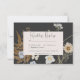 Annoncez votre mariage avec une touche d'élégance rustique. Notre carte de réponse mariage captivante, avec deux choix de dîners, présente un agencement vibrant de fleurs sauvages et de fougères, minutieusement dessinés à la main et rappelant les trésors botaniques pressés. Des couleurs riches comme le tan, le jaune, le crème, le bleu et le vert sauge se démarquent magnifiquement contre un cadre arrière - plan noir au charbon de bois. Les détails de votre mariage sont présentés dans une zone de texte crème, assurant clarté et élégance. Ce design captivant saisit l'essence d'une prairie fleur sauvage, offrant une façon unique et mémorable de célébrer votre histoire d'amour. Créé par Simply Farmhouse Press.