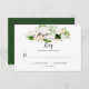 Une végétation luxuriante et foncée associée à des orchidées, des magnolias et des protées royales blanches dans des tons blancs et blush sur les cartes RSVP. Le dos de la carte est d'un vert foncé.