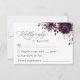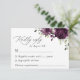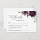 Complétez votre papeterie mariage avec cette carte RSVP design. Le design présente des fleurs d'aquarelle prune violet et de la verdure sur l'arrière - plan blanc.