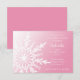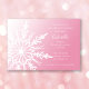 Invitez vos invités à votre fête de décembre, janvier ou février en l'honneur de la future mariée avec la festive invitation de douche de mariée hivernale avec flocon de neige blanc sur fond rose. Cette invitation de douche de mariage sur le thème élégant de la forêt hivernale personnalisée présente un design complexe de flocon de neige blanc sur un fond dégradé rose.