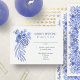 Dites "oui" au style avec ce superbe design fleur sauvage bleu et blanc ! Dessiné à partir d'élégants motifs chinois et de motifs floraux français, il fait écho à l'aspect classique de porcelaine de jarre de gingembre et d'élégante toile. Idéal pour des soirées d'été, des brunchs chic dans le jardin ou tout autre événement à thème bleu classique. Customisez maintenant pour ajouter une touche de charme intemporel à votre événement.