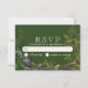 Cartes de mariage vert forêt RSVP avec un paysage de forêt de montagne rocheuse.