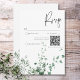 Entrez dans un monde d'élégance naturelle avec notre carte de réponse mariage enchanteresse avec code QR ornée d'une douce aquarelle de délicats feuillage vert de la forêt tropicale humide. Embrassé par la beauté luxuriante de la nature, ce design saisit l'essence d'un paradis tropical, invitant vos invités à se joindre à vous dans un voyage à la célébration mariage de vos rêves. Contre un arrière - plan blanc immaculé, le feuillage vert verdoyant ajoute une touche de fraîcheur et de tranquillité, donnant le ton parfait pour votre journée spéciale. Que vous soyez en train d'échanger des voeux dans un jardin tropical ou d'apporter la luxuriance de la forêt tropicale à votre lieu, notre design promet d'enchanter vos invités et de préparer le terrain pour une célébration remplie d'amour et de beauté naturelle. Laissez votre amour fleurir au milieu de la splendeur de la nature avec notre suite de faire-part de mariage d'inspiration tropicale. Choisissez l'élégance, choisissez la nature, choisissez des souvenirs qui vont dernier une vie. Créé par Simply Farmhouse Press.