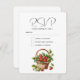 Carte RSVP avec une vibe d'été fraîche. Une jolie illustration avec des fraises fraîchement cueillies remplissant un pittoresque panier en osier.