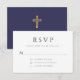 Carte de réponse personnalisée pour la confirmation de la croix religieuse garçon bleu marine. Fait partie de la suite d'invitation de confirmation Croix Garçon Bleu Marine avec invitation, papeterie et accessoires de fête assortis disponibles.