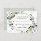 Le design comprend des eucalyptus, des succulents et des éléments de verdure dans des tons de sauge poussiéreux et de bleu/gris avec un cadre de courroie géométrique en terrarium de couleur or imprimé. L'arrière est orné d'un arrière - plan d'aquarelle vert sauge poussiéreux et naturel assorti.