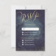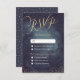 Glamor main lettrage calligraphie RSVP design et dots d'or confetti sur bleu marine nuit aquarelle arrière - plan, effet de parties scintillant d'or faux métallique brillant, moderne, chic, élégant et classe, parfait pour mariage vintage ou mariage d'hiver en soirée. Personnalisez votre propre carte RSVP pour votre ensemble de faire-part de mariage. Voir toutes les pièces correspondantes dans cette collection de calligraphie de parties scintillant dorée Glam night ci-dessous.