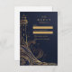 An elegant night-time coastal wedding design featuring a luminous gold lighthouse illustration set against a deep navy backdrop. Flowing ocean waves, celestial accents, and refined metallic linework create a dramatic, high-end atmosphere inspired by seaside evenings and maritime romance.