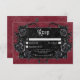 Transport your guests to a world of dark, enchanting elegance with our vintage gothic wedding response card with a QR code on the back. The deep, aged burgundy wine background sets the stage for a striking contrast, as bold white text emerges from intricate black text boxes. Three-dimensional gothic elements adorn the design, capturing the essence of mystery and romance. Unleash the magic and set the tone for an unforgettable wedding day. Created by Simply Farmhouse Press.