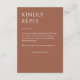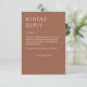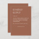 Complétez votre gamme de papier à lettres mariage avec cette carte de boîtier de réponse électronique RSVP conçue simplement pour la typographie et conçue pour coordonner avec notre gamme de papier à lettres mariage "Minimaliste Gras Gras". ● ✦ Entièrement personnalisable et facile à personnaliser. Disponible dans une palette de couleurs soigneusement entretenues, cette carte peut être adaptée à votre thème mariage ou à votre style personnel. Nous sommes là pour vous aider à adapter la conception à vos détails mariages spécifiques - texte, alignement, couleur personnalisée, etc. - et vous aider à créer une suite de papeterie mariage cohésive qui vous est propre.