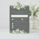 Carte de réponse mariage gris foncé avec options de repas. Doté d'une bordure de neiges peintes à la main et d'eucalyptus sur le devant et d'une couronne sur le dos de la carte. Tout le texte est entièrement modifiable et les points épars sur le devant et le dos peuvent être supprimés avant de commander si vous le souhaitez. Cette carte est disponible avec des modèles botaniques alternatifs et en différentes couleurs. Veuillez consulter la Collection dans mon magasin pour voir toutes les options et les éléments de coordination.