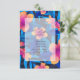 Ajoutez un éclat de charme tropical à votre papeterie mariage avec cette carte RSVP vibrante avec des fleurs d'hibiscus audacieuses dans les tons bleu, orange et rose. Le revêtement transparent moderne est un joli complément du design floral animé, parfait pour les mariages tropicaux, de plage ou d'été. Entièrement personnalisable pour inclure les détails de votre événement.