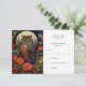 Une carte RSVP avec un hibou à l'allure cool avec un regard perçant. Une pleine lune à l'arrière avec un jardin de fleurs rouges.