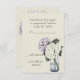 La carte RSVP correspondante pour notre collection de mariages Hydrangea Dreams avec une image aquarelle de magnifiques fleurs d'hydrangée en violet et blanc dans un pot en verre teinté bleu pour votre mariage rustique ou sur le thème du jardin.