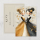 Carte de réponse de mariage mignonne pour couple lesbien, LGBTQ. Deux mariées dessinées à la main se tenant par la main debout côte à côte dans un jardin de feuilles et de vignes jaunes dorées. Elles ont les cheveux relevés et des roses roses dans les cheveux, joli dessin au crayon pour votre jour spécial.