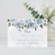 Ces jolies cartes de réponse présentent un joli bouquet de fleurs aquarelles bleu poussiéreux, un lavis aquarelle bleu élégant et une typographie script tendance. Un beau look floral qui coordonne avec nos invitations florales bleu poussiéreux pour votre Bat Mitzvah, douche de mariée, douche bébé et autres occasions spéciales.
