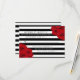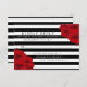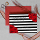 La collection de mariage chic moderne luxe présente un fond rayé noir et blanc classique accentué de magnifiques roses rouges rubis.