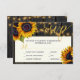 Carte de réponse de tournesols d'automne rustique avec options de repas sur un bois de grange brun foncé comme arrière - plan avec cordes de lumières scintillantes.