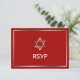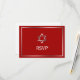 Une carte RSVP Bar Mitzvah classique avec un design Star of David en argent et rouge. Les dessins sont des illustrations/graphiques à papier plat - PAS VRAIMENT FOIL D'ARGENT.