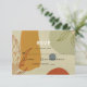 Carte RSVP abstraite tendance. Parfait pour une mariage moderne. Illustration de la fleur de protéa et des formes colorées sur arrière - plan de texture papier. Couleurs rouge, jaune et vert. Style botanique minimaliste. Personnalisez avec votre texte.