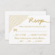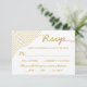 Célébrez votre mariage avec ces cartes de réponse minimaliste et moderne en or et blanc (la couleur or est imprimée sur les cartes). Avec un thème ondulé, ces cartes formelles et élégantes sont tout simplement belles. À travers les champs modèles, personnalisez avec vos détails mariages, y compris l'espace pour un petit monogramme sur le fond.