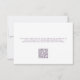 Cette Lilac Floral Elegant Wedding RSVP Card présente des fleurs délicates sur un arrière - plan violet clair, complétée par une typographie contemporaine. Les clients peuvent écrire leur nom et leurs préférences alimentaires, ou ils peuvent utiliser le code QR au dos pour répondre en ligne. Il est entièrement personnalisable avec les noms du couple et répondre par date, ainsi que le code QR et les instructions au dos. La conception et le libellé formels ajouteront une touche d'élégance à votre célébration mariage. Si vous ne souhaitez pas utiliser le code QR, il vous suffit de supprimer l'URL et les instructions au verso. Cette carte RSVP se marie merveilleusement avec la Faire-part de mariage Verona Sunset Orange.