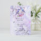 Belle teinte lumineuse de violet 5x7 faire-part de mariage à save the date, avec un couple de merles bleus parmi des lilas violets et roses