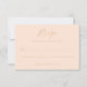 This elegant wedding RSVP card features a soft, blush pink background with delicate cursive typography that exudes sophistication and charm. The minimalist design includes simple lines for personalization, creating an inviting space to convey your response. Perfect for a romantic or classic wedding theme, the gentle color palette and refined script evoke a sense of warmth and grace, making it ideal for couples aiming for an understated yet stylish celebration.