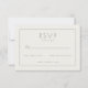 This elegant wedding RSVP card features a minimalist and sophisticated design, perfect for couples who appreciate understated elegance. The clean layout with simple lines and graceful typography creates an air of timeless charm, making it ideal for modern weddings. With its soft color palette and subtle script accents, this card exudes a refined and welcoming mood, inviting guests to respond with ease. It’s the perfect addition to your wedding stationery suite, ensuring your invitations reflect your personal style while maintaining a classic appeal.