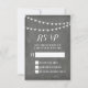 Personnalisez vos propres cartes de réponse de mariage de lumière de ficelle d'été de tableau noir. Personnalisez vos cartes de réponse en changeant le style de police, la couleur et plus encore en cliquant sur le bouton "Personnaliser".