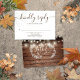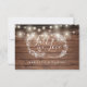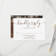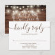 Une carte de réponse RSVP rustique avec vos détails dans une typographie chic et personnalisée avec vos noms et feuillage floral dessiné à la main et lumières de chaîne sur un fond de panneaux de bois rustique au verso. Conçu par Thisisnotme©