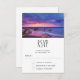 Carte RSVP avec une belle photographie présentant des couleurs frappantes de pourpre, de bleu et de rose au coucher du soleil.