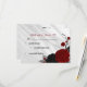 Magnifique carte rsvp botanique personnalisable Fleurs rouges & noires élégantes avec feuilles gris sur marbre gris argent arrière - plan