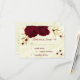 Magnifique carte rsvp botanique personnalisable belle fleurs rouge foncé avec feuilles or contre élégant arrière - plan en marbre