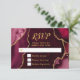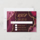 Faites une première impression audacieuse et élégante avec cette carte de réponse en marbre d'agate rouge burgundy et or, mettant en vedette des tons de bijoux riches, des textures de pierre organique et des accents dorés scintillants parfaits pour les célébrations d'automne et d'hiver. Les teintes riches de vin et de cramoisi associées à des détails en or métallisé créent un look dramatique et raffiné idéal pour une réponse de mariage, une réponse d'anniversaire ou une réponse de Sweet Sixteen avec une esthétique formelle, moderne ou glamour. Inspiré par les motifs naturels d'agate et de géode, ce design luxueux se coordonne parfaitement avec les événements saisonniers haut de gamme et est entièrement personnalisable pour correspondre à vos détails, ajoutant une sophistication intemporelle aux célébrations d'automne et d'hiver.