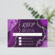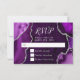 Faites une première impression audacieuse et élégante avec cette carte de réponse en marbre d'agate violet et argent, mettant en vedette de riches tons de bijoux, des textures de pierre organique et des accents argentés scintillants parfaits pour les célébrations d'automne et d'hiver. Les teintes d'améthyste profondes associées à des détails en argent métallisé créent un look dramatique mais raffiné, idéal pour une réponse de mariage, une réponse d'anniversaire ou une réponse de Sweet Sixteen avec une esthétique formelle, moderne ou glamour. Inspiré par les motifs naturels d'agate et de géode, ce design luxueux se coordonne parfaitement avec les événements saisonniers haut de gamme et est entièrement personnalisable pour correspondre à vos détails, ajoutant une sophistication intemporelle aux célébrations d'automne et d'hiver.