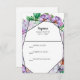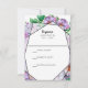 Conçu pour répondre à nos invitations de mariage aux fleurs d'Hydrangea violet, cette carte RSVP offre beaucoup d'espace à vos invités pour répondre à votre invitation à votre mariage. Il présente de magnifiques fleurs d'hydrangée violette empilées élégamment derrière un cadre géométrique noir élégant.